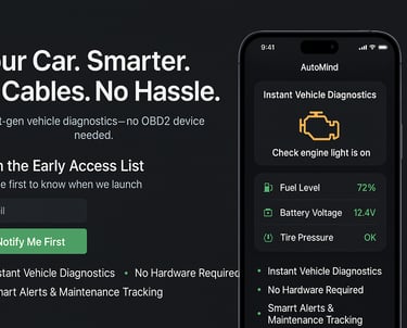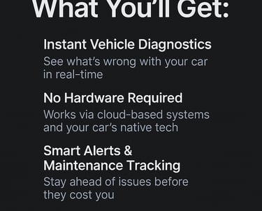 Next-gen vehicle diagnostics — no OBD2 device needed. No more going to Auto Store to get your car scanned, no more buying a scanner with limited features, or plugging wires into your OBD port