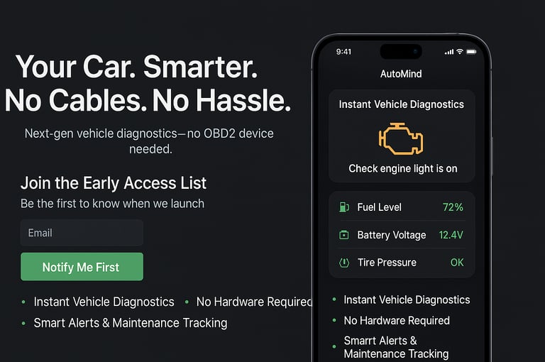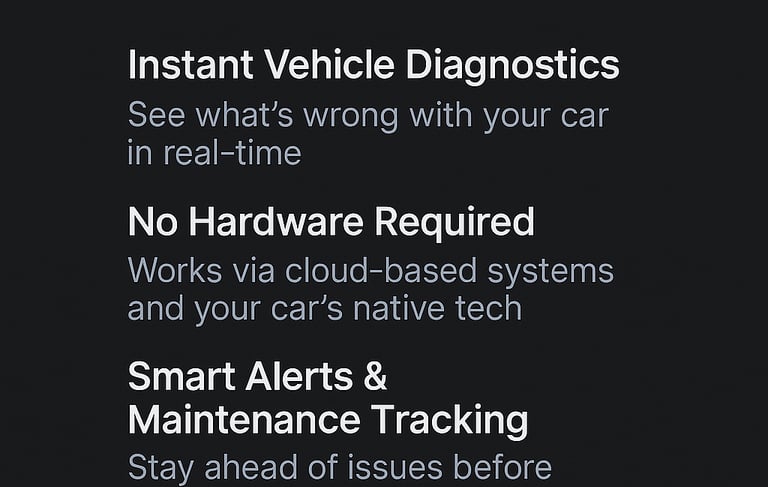 Next-gen vehicle diagnostics — no OBD2 device needed.